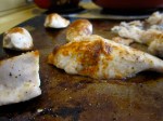 - Baking the chicken: Preheat the oven to 350*F, cut your chicken breast into slices, slather in olive oil and taco seasoning, and bake for about 20-25 minutes. Leave the oven on after the chicken is done!