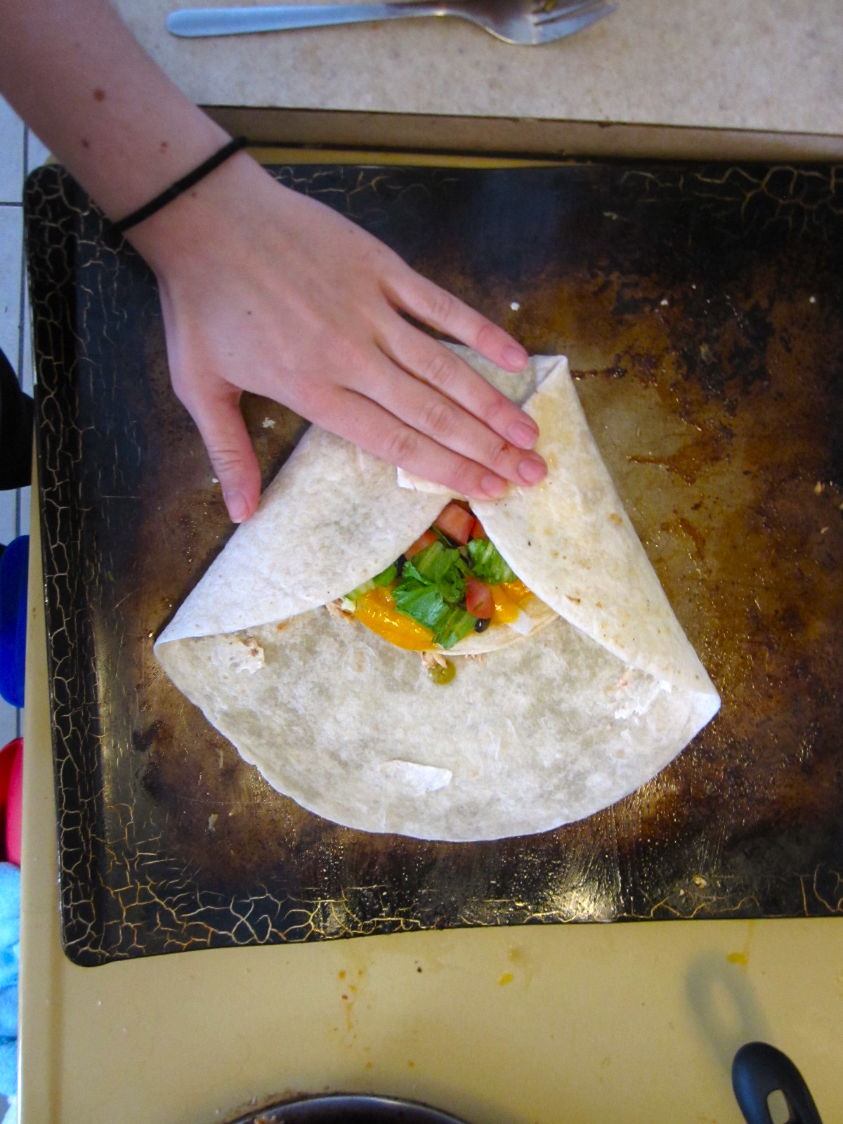 It turned out AMAZING! The best part is, its nice an compact, I was able to eat it in hand on the way to the library (no joke!). Even was able to run into two people, give them hugs, and not get any of my ridiculous sauce on them. They were impressed, to say the least. This is perfect for girls on the go! Try it. You’ll enjoy.
