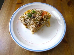 So, I decided on a casserole for this idea, added some pasta and threw some veggies on top. I ran out of cheese when I was making it, so we decided to do the vegan thing… just this once. Needless to say, if you aren’t lactose intolerant and love cheese, add some into this recipe on top. If you are a vegan, adding some nutritional yeast on the top of the casserole can give it a nice cheesy zing. Hope you enjoy!
