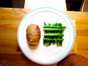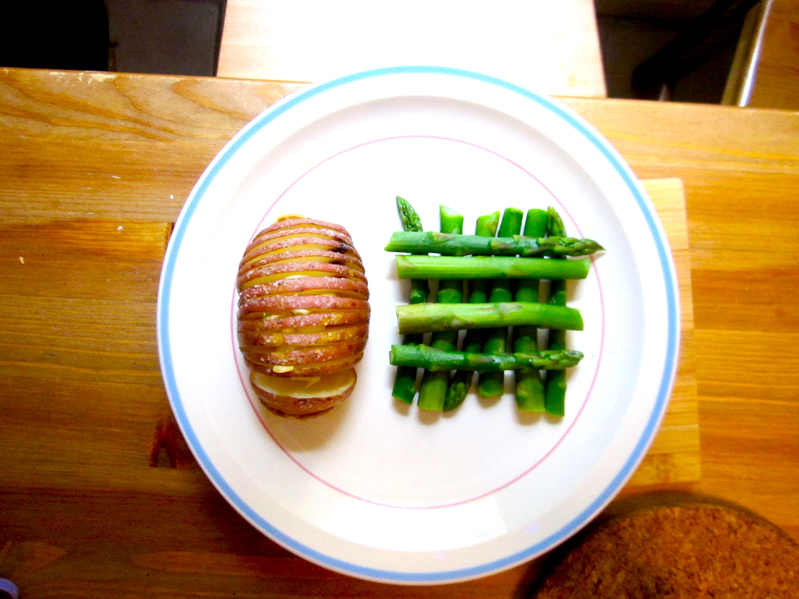 - With the openings now made in the potatoes, new room has been made to get butter down in those crevices. I put butter on my potato, but used olive oil for my roommate who’s lactose intolerant. Use whichever one you like.