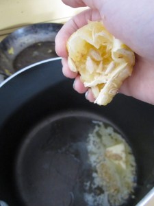 - First, put garlic, butter, and lemon in a large non-stick saucepan on medium heat. Cook until garlic is fragrant and butter is melted.