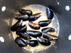 - Mmmm. They’re ready to serve after they’ve opened, so just pour the mussels with juices into a bowl.