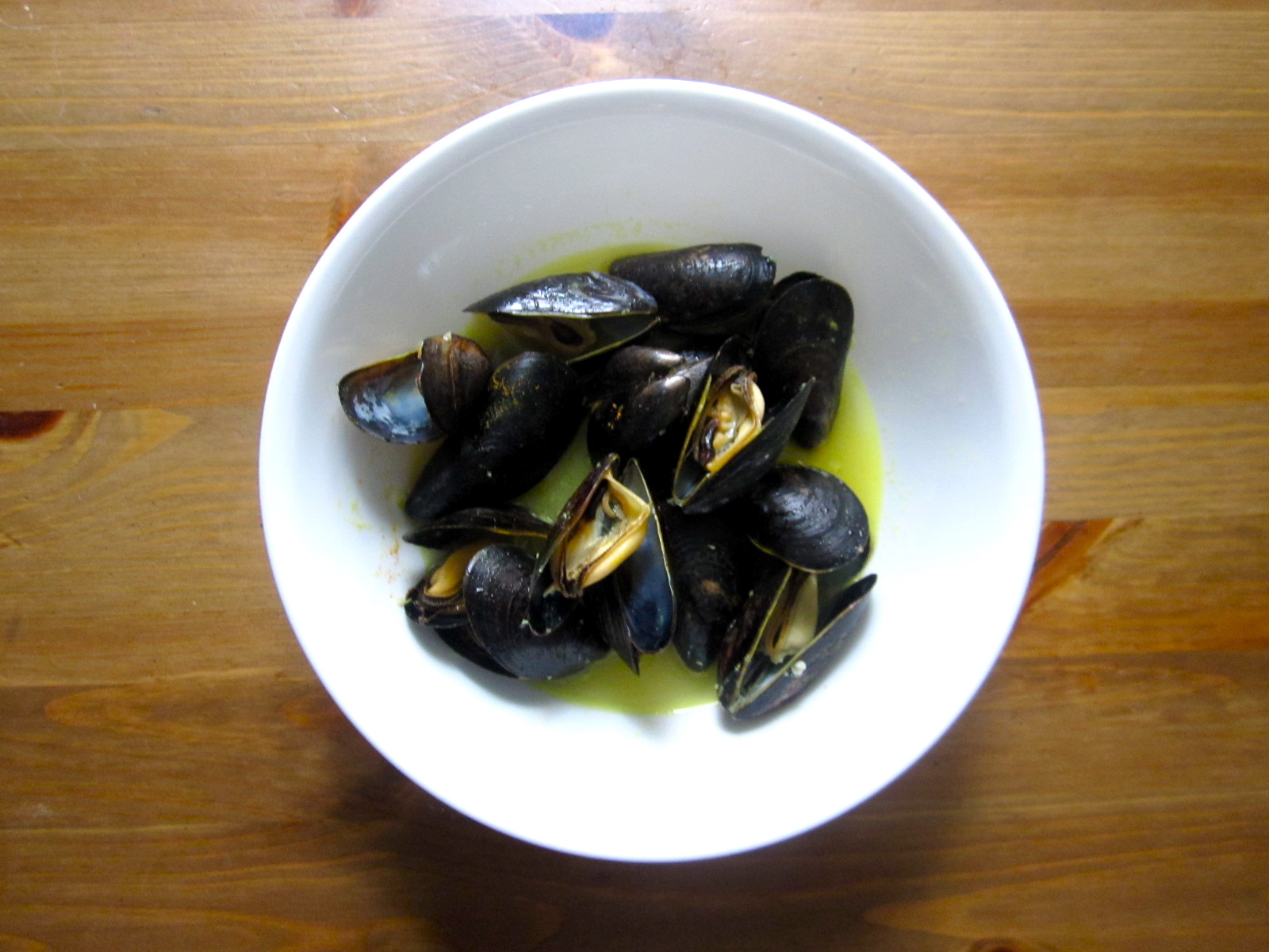 - Turmeric… I have an unearthly love for this spice. It’s known for turning things yellow, and was used as a dye back in the day. Turns your food yellow too. If you don’t have turmeric, consider purchasing- its the cheap man’s solution to saffron, great for paellas and anything Persian. Also- its just fun. Add some to your mussels.