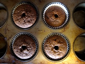 - Bake for about 20-30 minutes. As they are baking, make your ganache that will go inside the cupcake.
