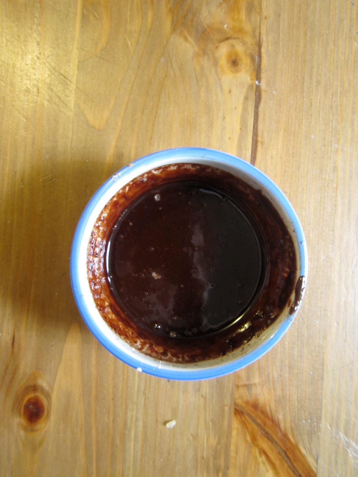 - This part is complicated… put the incredients for the ganache in a small bowl and microwave for about 30 seconds, and then mix them: