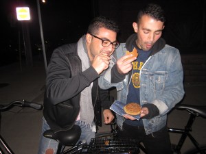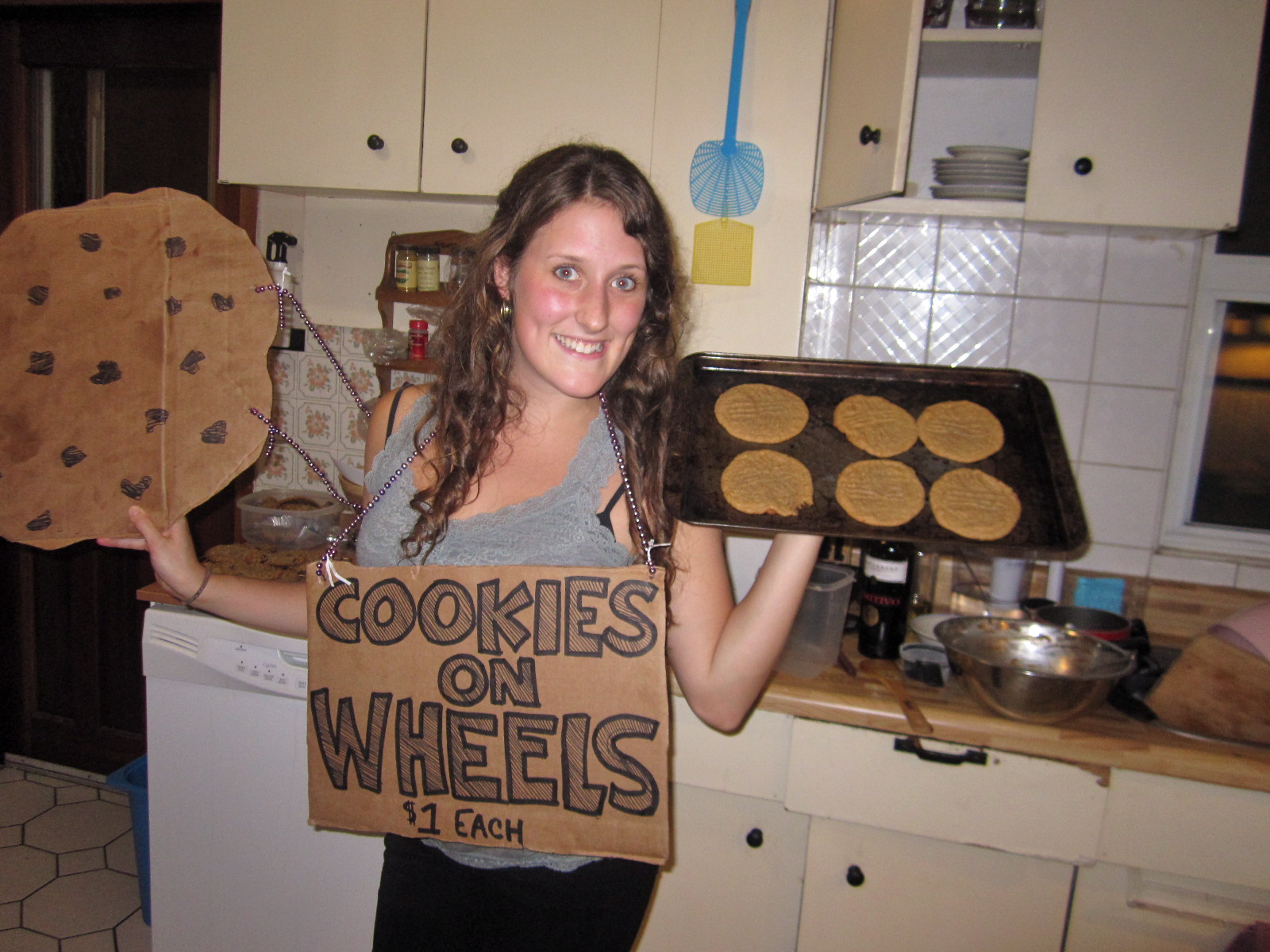 This year for Nuit Blanche, my roommates and I had a fabulous idea… sell cookies, on our bikes. It made total sense, the entire city of Toronto would be out and about searching for art, and all the restaurants would be full, and there we’d be, on our bikes with hundreds of cookies at our disposal. Indeed, the plan was a success. Jamie, Jill and I baked up 5 different types of cookies: Pumpkin Spice Chocolate Chip, Chocolate Caramel, Peanut Butter, Oatmeal Chocolate Craisin, and… Lizzy’s Surprise. All of the cookies baked, except Lizzy’s Surprise, were made from recipes we found online. We decided to make a mixed media cookie, for all the eclectic people out for Nuit Blanche… and it was quite the hit!