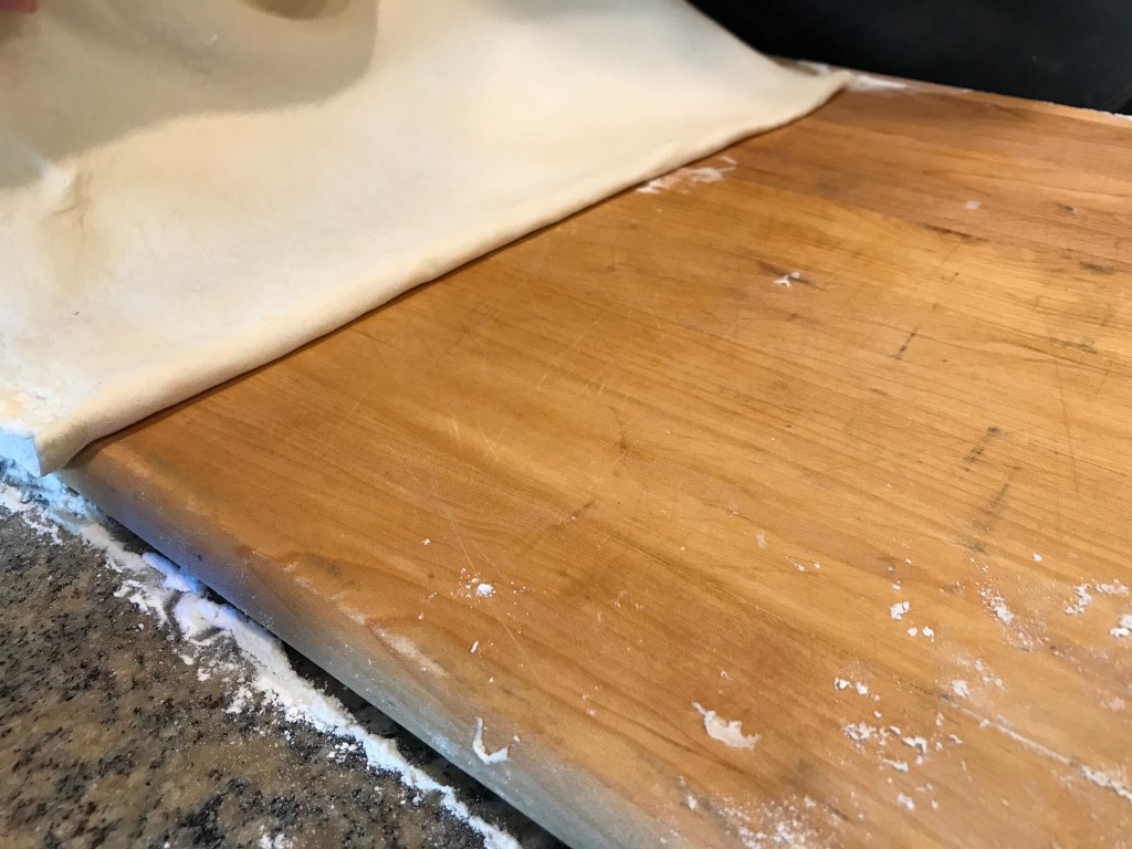 3. Next, we are going to roll out. I rolled it out as much as I could on this cutting board without making any holes.